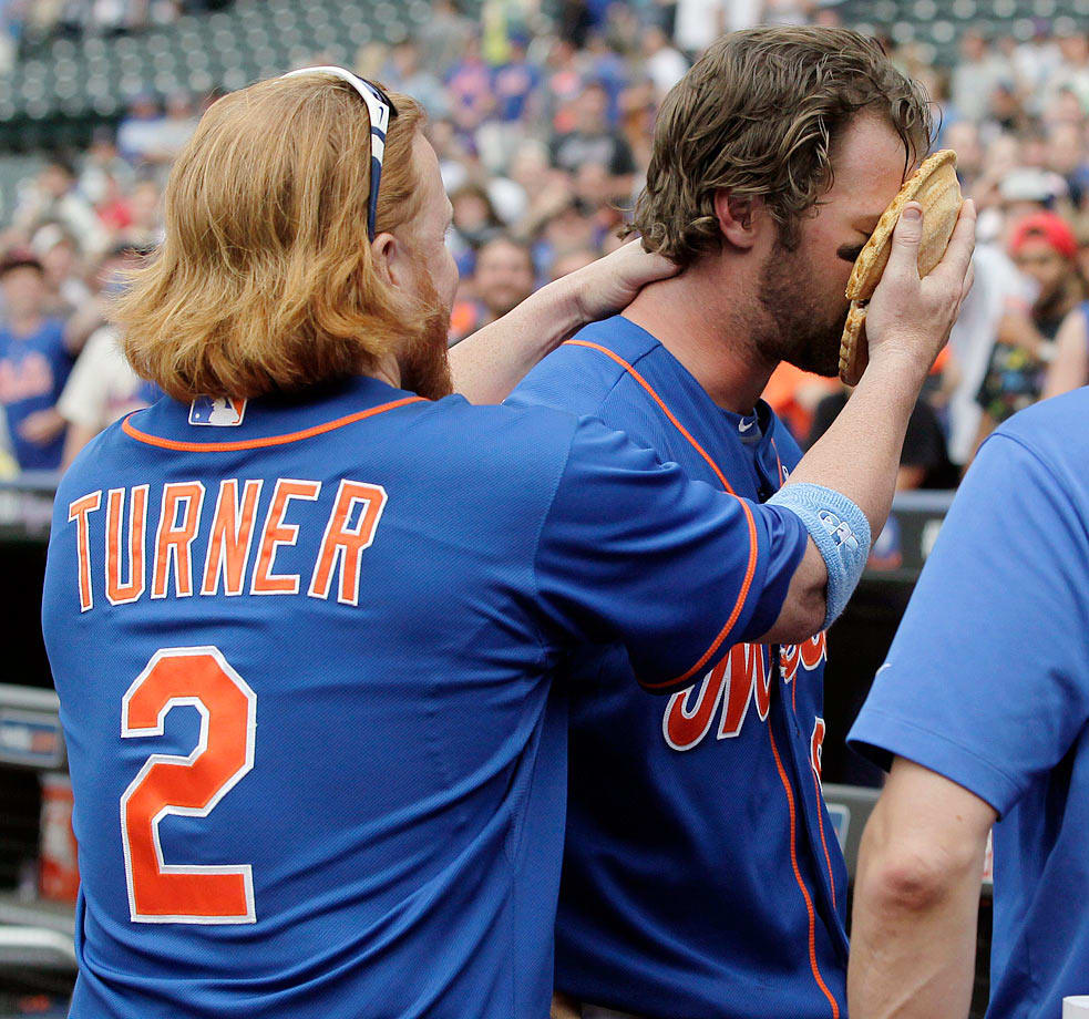 Justin Turner pies Kirk Nieuwenhuis :: Jason Szenes/Getty Images June 16, 2013