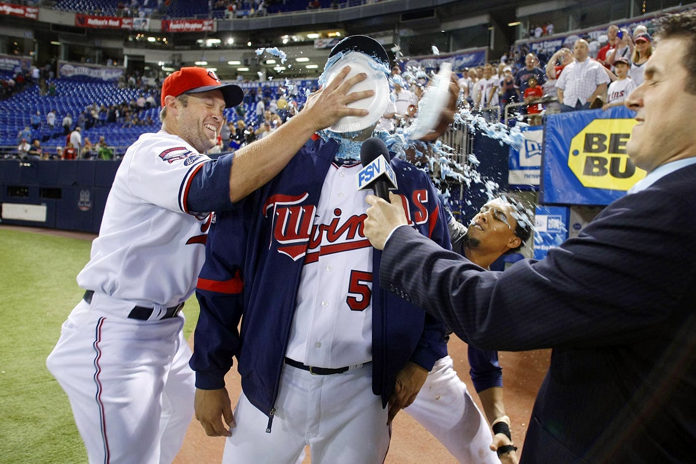 Michael Cuddyer and Carlos Gomez pie Anthony Swarza :: Bruce Kluckhohn/Getty Images May 23, 2009